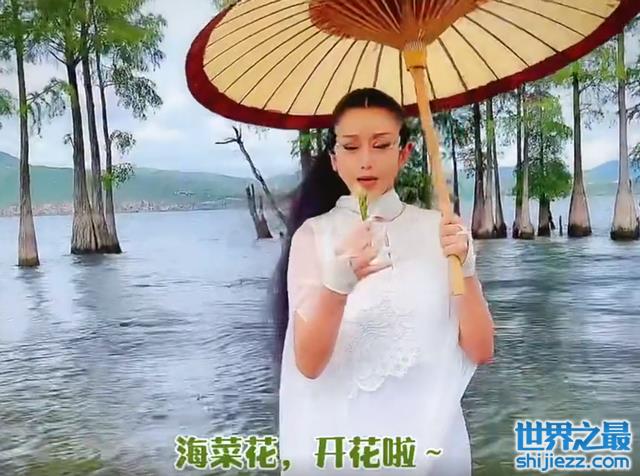 杨丽萍老师俯下身去,在水里摘了一朵海菜花,还自顾自地说着:“海菜花开花了,这说明我们洱海的水干净啦。”言语间满是开心。杨丽萍老师看着手中的海菜花,表情非常欣喜,还不忘对着镜头展示。