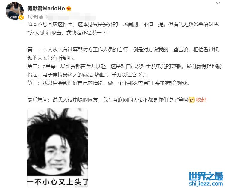 近日,针对网上关于“何猷君辱骂工作人员”的流言蜚语,何猷君本人在社交平台上,首次进行了公开回应,何猷君表示自己并没有任何“辱骂”对方的言论,但他也承认自己没有管理好情绪,接下来他也会让自己不那么容易“上头”。