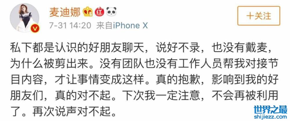 芒果的恶意剪辑,上过三次热搜,一次张雨绮一次赵丽颖,而第一次却是因为麦迪娜。《新生日记》里麦迪娜聊两个朋友的事情,在节目组恶意剪辑下,这行为被观众看成“为博出位公布好友隐私”。