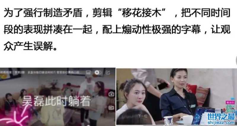 节目甚至用“移花接木式”剪辑,拼凑吴磊的表情反应,配字煽动情绪。还将后期采访,生搬硬套到首期,制造吴磊的好胜人设。