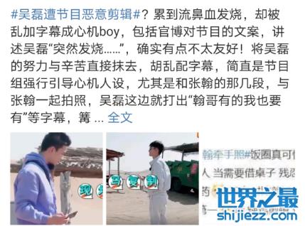 吴磊与张翰一起拍照,字幕引导“翰哥有的我也要有”。张翰不舒服后,发现吴磊也发烧了,字幕配字“突然发烧”“似曾相识的操作”,仿佛吴磊是处处争风吃醋,学人装病。