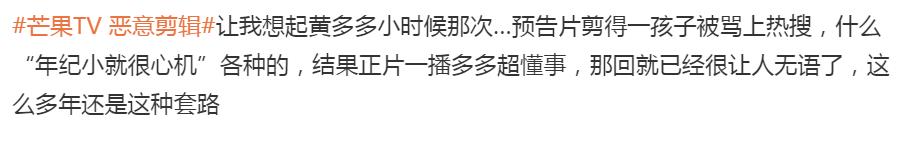 结果正片一播,其实完全是两回事,但才8岁的黄多多已经被网络暴力一个多礼拜了。