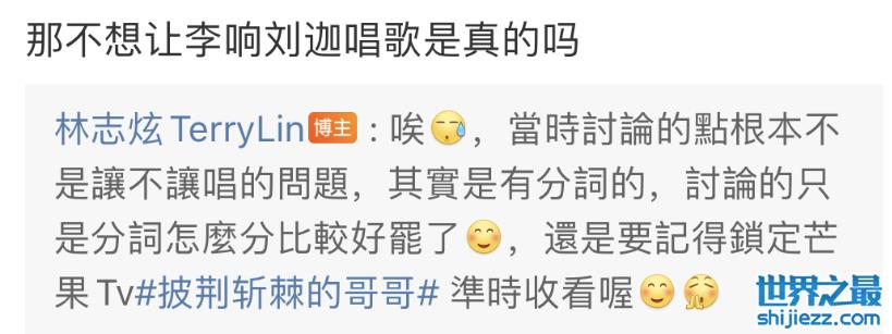最近播出的《披荆斩棘的哥哥》,林志炫也深受剪辑之苦。上期跟李响闹不愉快,这期跟赵文卓闹矛盾,每次都要林志炫发博亲自澄清。《披荆斩棘》节目组也因此被称“制造荆棘”的节目组。