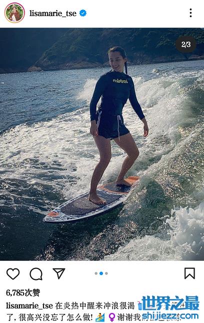 其实,这也不是谢嘉怡第一次在个人社交平台上发布她冲浪的照片和视频,大概每隔一段时间谢嘉怡都会去冲浪,可以看出谢嘉怡是真的很喜欢冲浪,热爱这项运动的她身材较其他女明星而言也是充满力量型的。