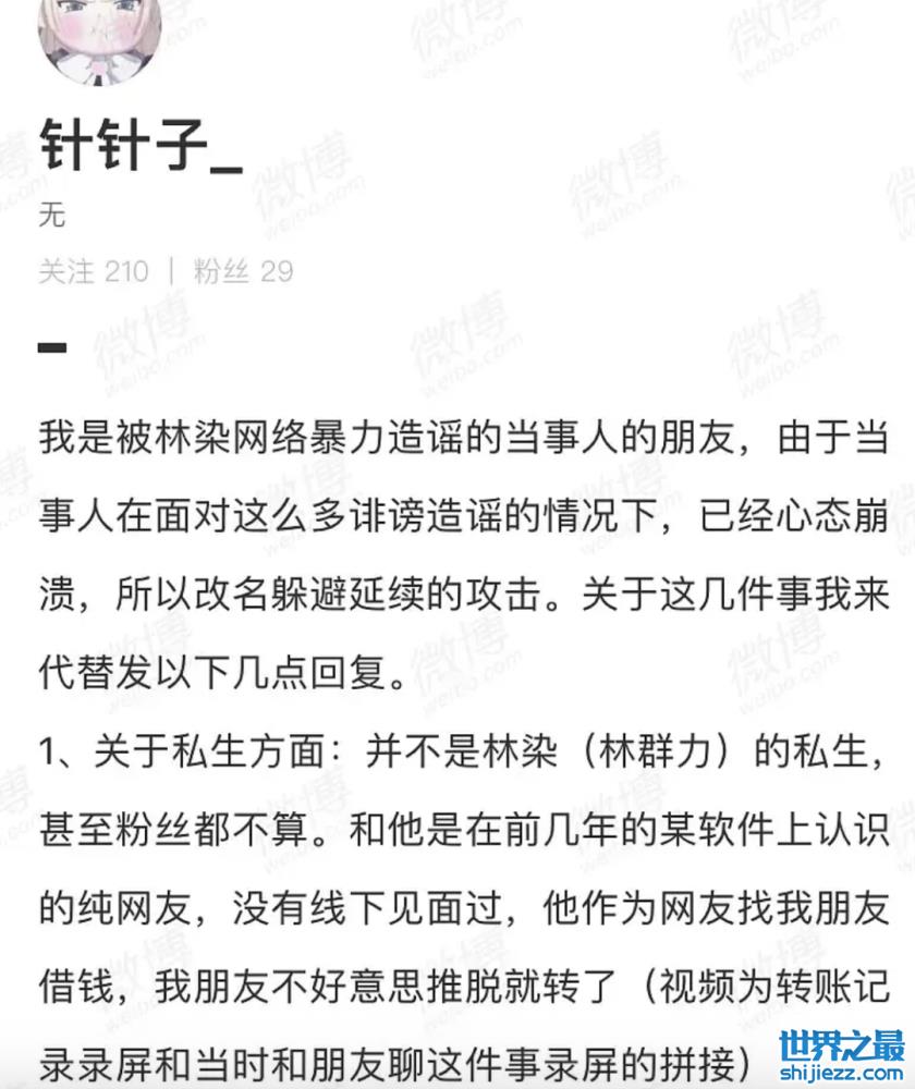 之后,该网友通过朋友发布了一个视频,视频中还有转账记录,来证明自己确实向林染转钱了。