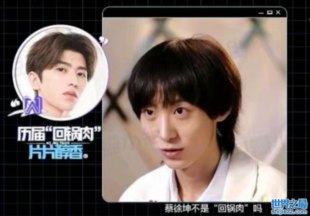 因为他两次参加选秀,被问到作为回锅肉再参加比赛的心情。没想到他来了个“四连击”,反问到:蔡徐坤不是回锅肉吗?周震南不是回锅肉吗?孟美岐不是回锅肉吗?李汶翰不是回锅肉吗?