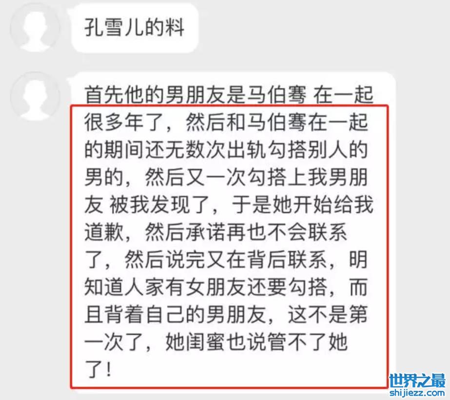 这事儿第一次被大众关注到,还是因为当时有网友爆料,孔雪儿和马伯骞在一起很久却还在勾搭其他男人,这其中一位还有她的男朋友。