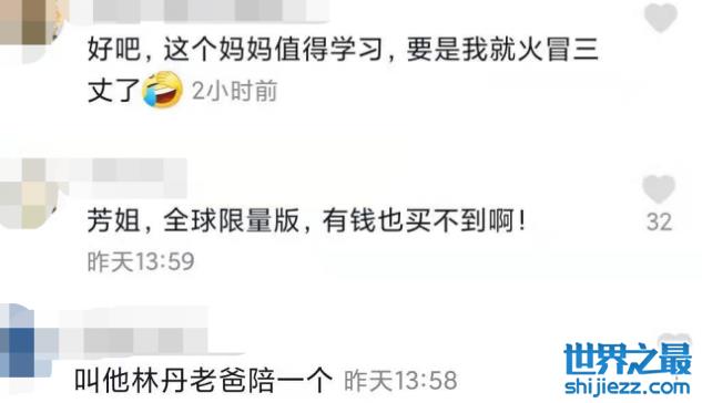 网友感叹谢杏芳脾气太好,若是换位思考,早把自家熊孩子收拾一顿了。还有网友调侃包包成功变成“全球限量版”,隔空喊话林丹再买新的包包让老婆消消火。