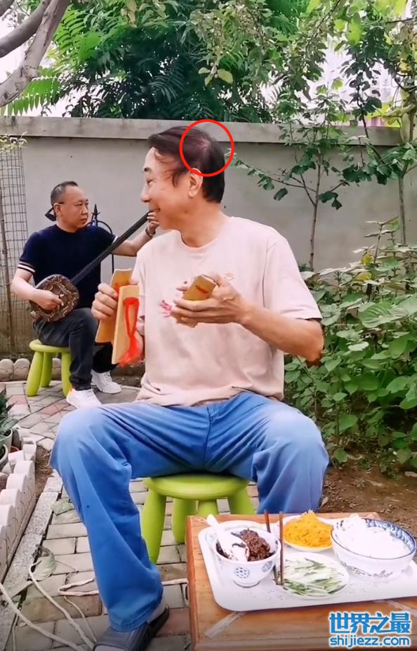 冯巩在豪宅大院打快板,穿塑料拖鞋吃炸酱面,头发稀疏头顶秃一块 ...