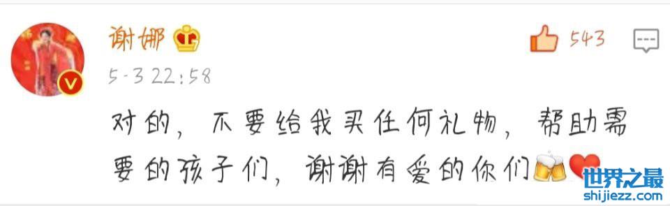 此前,谢娜开直播时,也曾明确表示不要粉丝为其送礼物,也曾发动态表示不要给她买任何礼物,让粉丝帮助需要的孩子们,谢谢大家对她的爱。