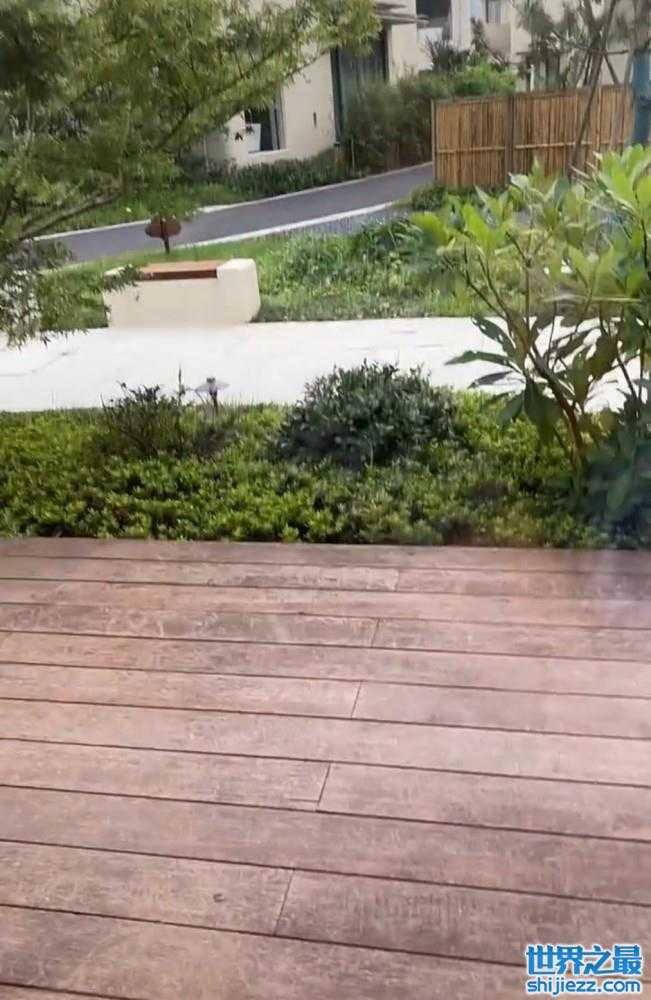 说着镜头指向了窗外,只见窗外罕见有一个大阳台,面积似乎有一个篮球场那么大。看起来每家每户都有一个庭院,装修风格也是非常的舒适。