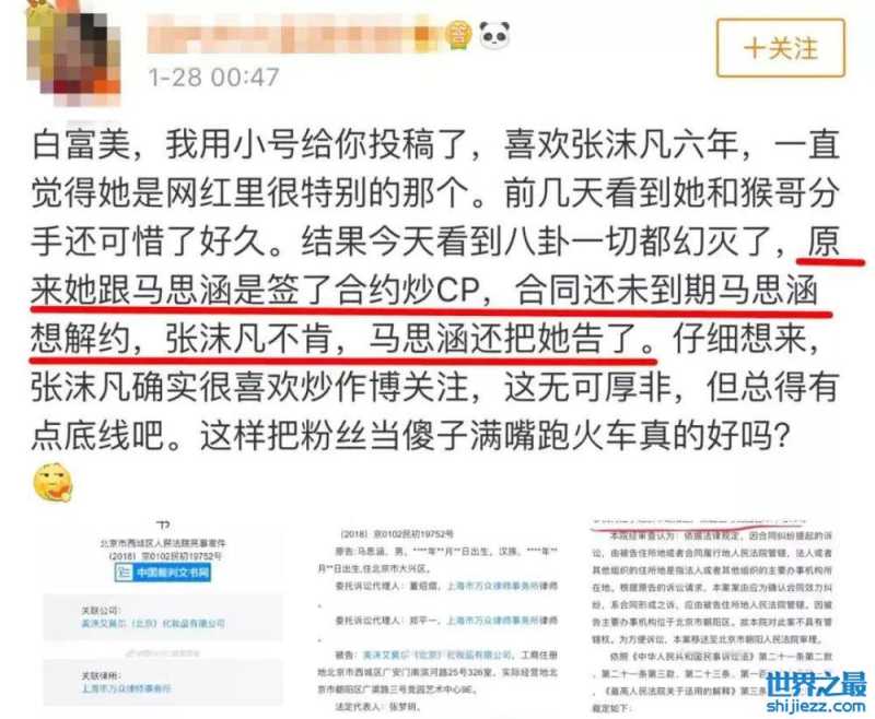 2019年,有爆料称,马思涵和张沫凡是签了合约才一起炒CP的。后来马思涵想解约,张沫凡直接把男方告上了法庭,搞得一地鸡毛。