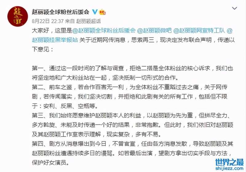 毕竟真金白银地为自己的偶像花了钱了,多少也是可以发表自己的意见的,但是以这样的方式要求明星作出承诺似乎就越界了。晚些时候赵丽颖工作室也发了一条长文回应此事,希望粉丝可以理智,结束这场对赵丽颖的“绑架”,更多地去关注作品。