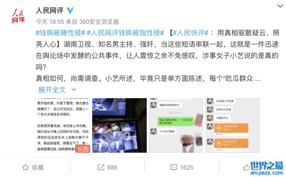 目前,钱枫的事情也在持续发展中。昨天,在湖南台发博之后,人民网也发博评论了此事,直言“用真相驱散疑云,照亮人心。”