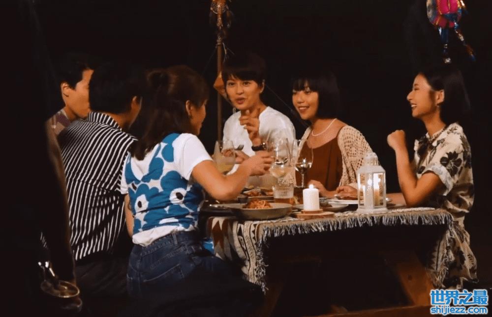 拍摄另一个画面时,梁咏琪与友人们坐在摆满西餐和香槟的桌子旁边谈笑风生,一群人其乐融融。