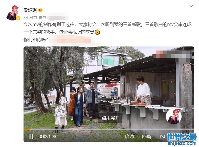近日,梁咏琪在个人社交平台晒出一段视频,视频内容是关于梁咏琪新歌MV拍摄的花絮。