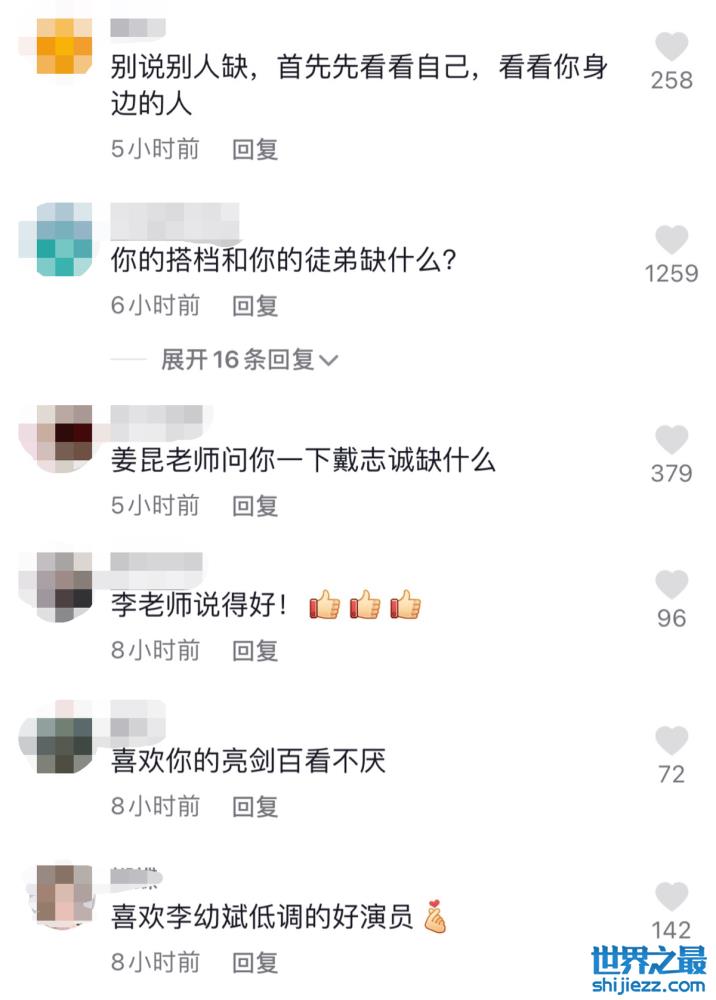面对两位老艺术家的看法,网友的反应却截然不同。对于姜昆的发言,不少网友在视频底下质问“你的搭档和你的徒弟缺什么?”“别说别人缺,先看看你自己”等诸如此类的话。而在老戏骨李幼斌谈到该话题时,大家都纷纷表示支持和赞扬,两边画风对比截然不同。