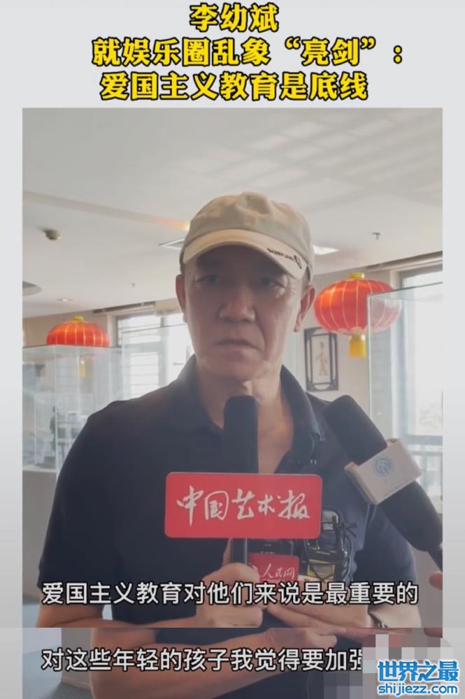 当时老戏骨李幼斌也发表了自己对于失德艺人的看法,大胆对娱乐圈乱象“亮剑”,称爱国教育是底线,呼吁演员要有使命认知,对于此前青年演员参拜日本靖国神社一事,李幼斌称希望演员能够多了解历史。