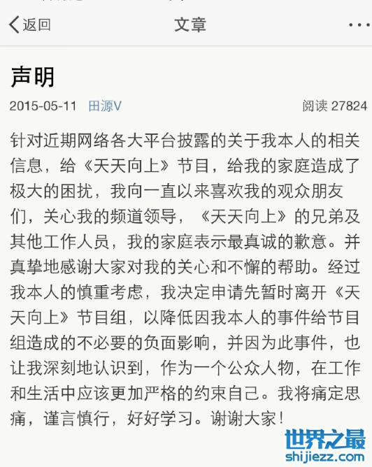另外,在2015年KTV热吻一事曝光后,田源还被爆出与哈尔滨嫩妹吃饭并在酒店过夜的照片,此事曝光后,田源离开了《天天向上》,这次没有否认而是直接退出,这间接等于承认了吧。