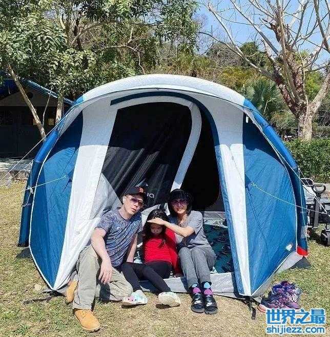 朱茵晒了一家三口外出野营的照片,看上去温馨又幸福。