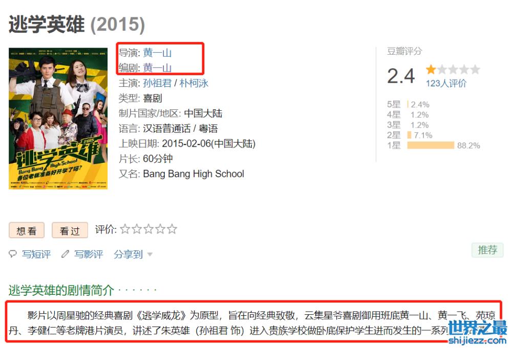 15年他自编自导了《逃学英雄》,剧情介绍写的就是以周星驰的《逃学威龙》为原型,致敬经典,出演的有“如花”李健仁,黄一飞和程东等周星驰电影黄金配角,但最后在豆瓣评分只有2.4分。