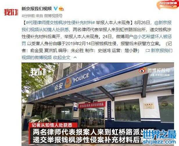 8月26日,小艺两位代理律师现身派出所递交了材料,材料内容正是递交钱枫涉嫌性侵补充材料,举报人本人未现身。目前了解到的是,小艺正在积极维权,看不到钱枫方有任何动向。