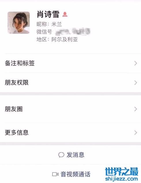 初中同学晒出肖诗雪的微信截图。