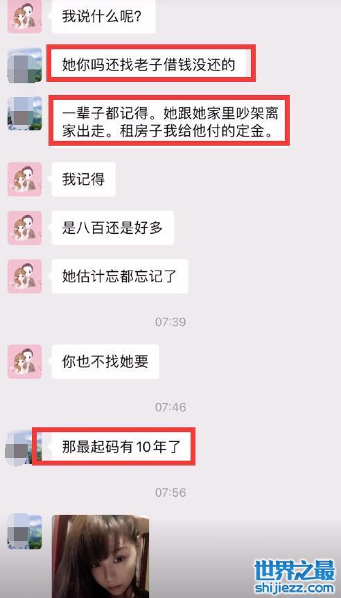 其中一位同学说:“找我借钱没还的,一辈子都记得,她跟家里吵架离家出走,租房子我给她付的定金”,从聊天截图中可见,差不过800块钱的样子,十年过去了,肖诗雪都没还钱。