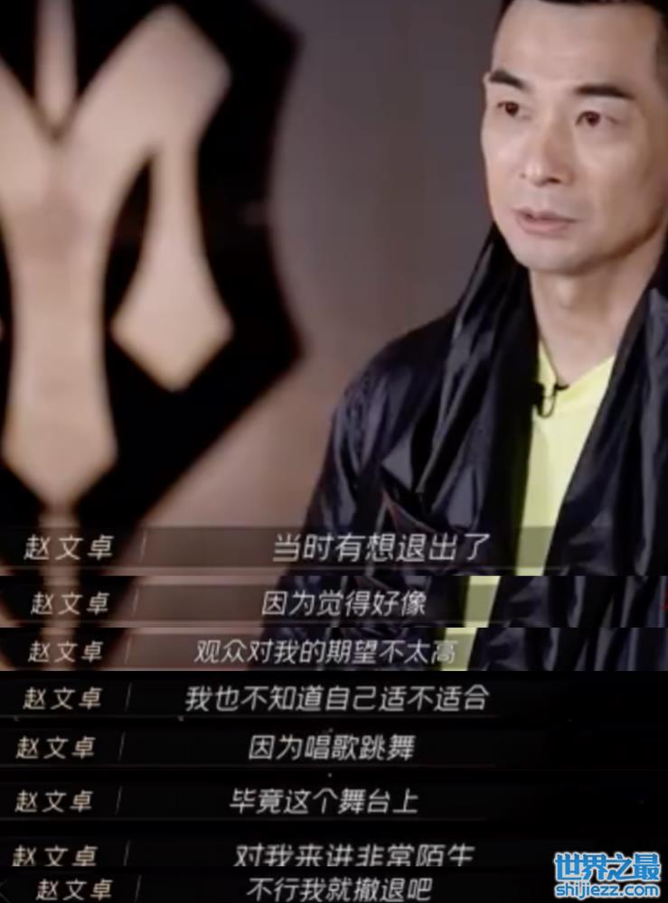 近日,在最新播出的综艺节目中,赵文卓透露自己有过退赛的想法,因为唱歌跳舞不是自己擅长的领域,站在舞台上表演对自己来说非常的陌生,也不知道自己是否适合。
