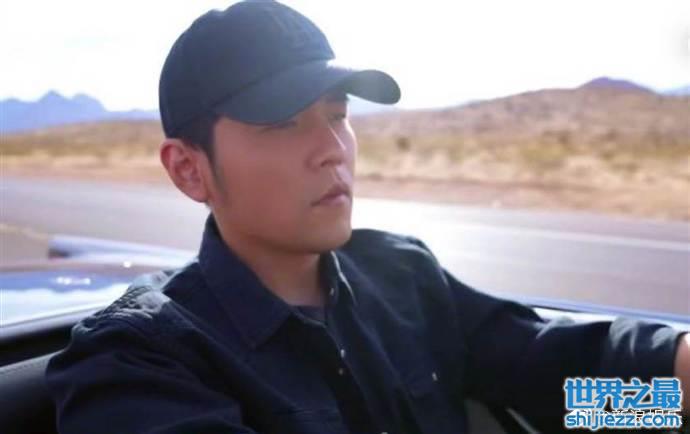 MV中他穿着一身黑,还戴着黑色的鸭舌帽,看上去像个酷酷的中年牛仔。开着敞篷跑车,身后风景十分美丽。