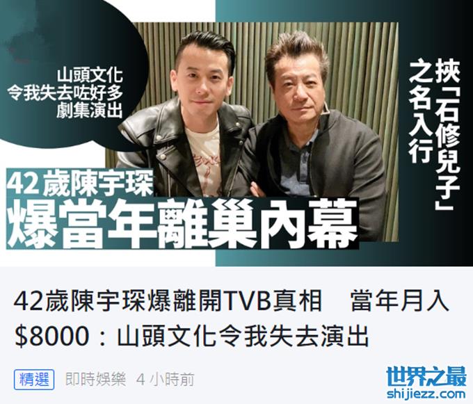 石修的儿子陈宇琛在国外读建筑师,毕业之后加入TVB演戏,不过一直都是演一些配角人物,近年因为TVB不景气,陈宇琛甚至被“闲置”了,无奈之下只能跟TVB解约。