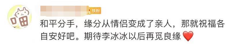 李冰冰和男友分手时说:“分开这件事是我们经过一段时间慎重考虑的结果”,并透露分开不是因为矛盾,虽然不是恋人,依旧是亲人,和平分手。
