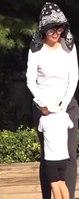 8月29日,有八卦媒体拍到李冰冰和家人出门玩,从图中可见,李冰冰穿着白色衬衣配黑色紧身裤,戴着墨镜,披着头纱,防晒工作做的很到位。