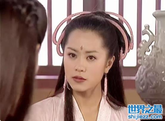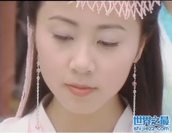 只能说苏有朋的《倚天屠龙记》盛产美人也盛产塑料头饰,戴廉价塑料头饰的可不止高圆圆一个,还有贾静雯。