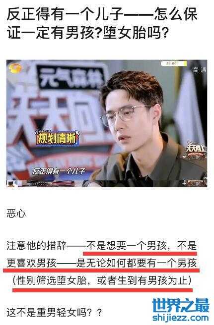 那么问题来了,怎么能保证他未来老婆必须给他生出儿子来?王一博的措辞确实是,不是想要一个男孩,不是更喜欢男孩,是无论如何都要有一个男孩,被网友认为这是公众人物在公开场合,如此不知收敛的重男轻女。