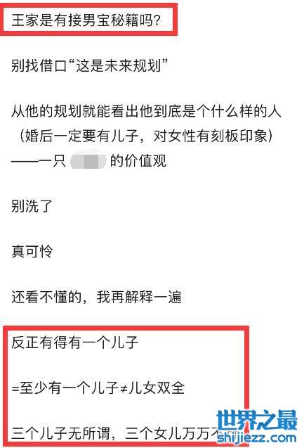 网友说:“现在2021了,居然明星可以毫无负担地说自己“反正得要个儿子”,还有一大群人洗白说“想要儿子也没错”,这是“想要”吗?这意思是“我必须要有儿子”,怎么才能保证‘自己必须有儿子呢’”“公众人物带头强调刻板印象,绝了!”