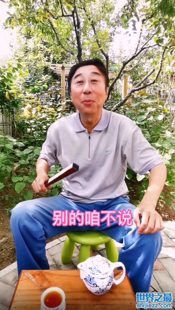 冯巩老师坐在自己的豪宅大院里,拿着一把扇子说起了相声,说到激动之处还摇头晃脑起来。只见冯巩老师面前放着一个木制茶几,上面放着一个瓷白的茶壶加一个小巧的茶杯,边说相声说喝茶,好生惬意。