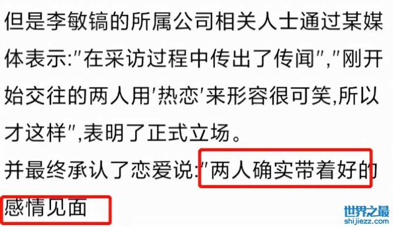 随后,李敏镐的公司才改变了自己的说法,表示两人刚开始交往用“热恋”的说法很可笑,所以才否认了恋情,并在最后承认道——
