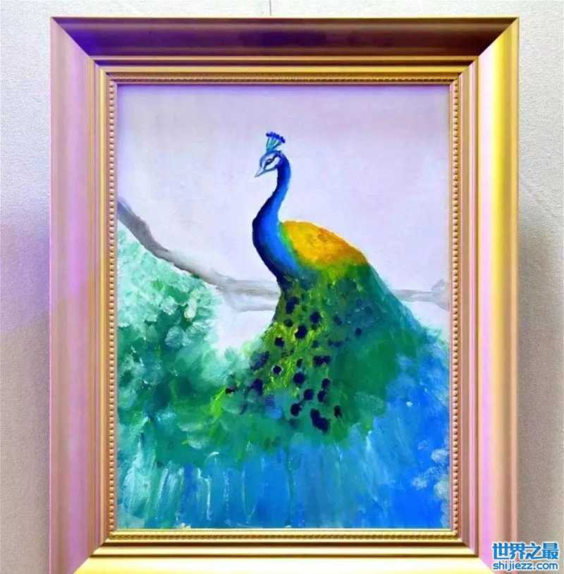 再来看今年11岁的王诗龄,擅长钢琴和画画,小小年纪画的孔雀图,曾经被拍卖出10万元的价格。