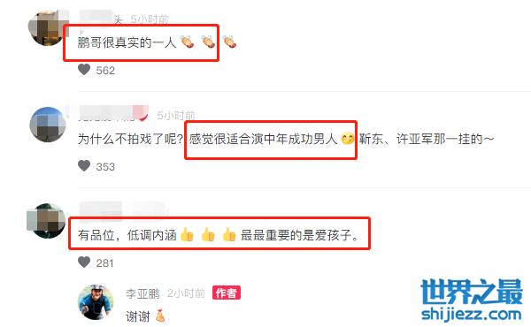 视频一出,网友纷纷夸赞李亚鹏真实,是难得的好男人,尤其是疼爱孩子。也有人希望李亚鹏回归影视圈继续演戏,认为他的气质和靳东差不多,饰演出演儒雅有文化的成功人士,有魅力不油腻。