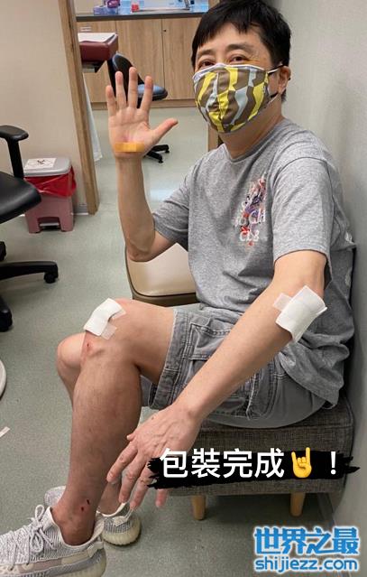 60岁庾澄庆骑自行车摔伤流血,手脚多处严重破皮,腿上还有车轮印 ...