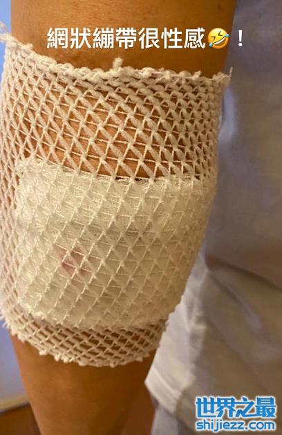 照片中,哈林身穿灰色T恤和灰色短裤,脚上踩着一双运动鞋,手上和腿上都包上了不同大小的纱布,看来伤的不轻。面对镜头时,哈林挥手示意,还在旁边配上轻松幽默的文字符号,即使受伤也不忘调侃安慰粉丝。