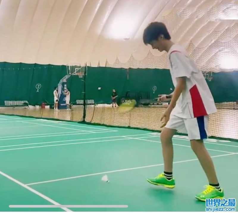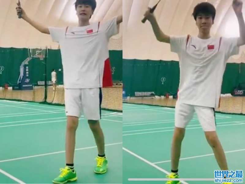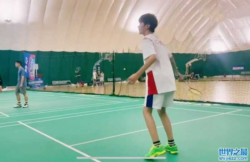 天天在和对面的人进行羽毛球比赛,他聚精会神地盯住飞来的球,长臂一挥击过去,赢下一小局,他还张开手臂跳舞庆祝,少年气质爆棚很可爱。