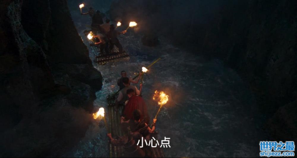 主角三人通过水路翻越遮龙山,进入水路洞口后,三个人被湍急的河水冲到了支流。