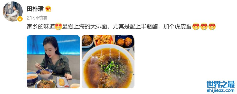 从她桌上比巴掌还大的猪肉排来看,田朴珺去的面馆的确很厉害,作为一个女明星她吃得实在不算少,甚至连配菜都是十分的丰盛。