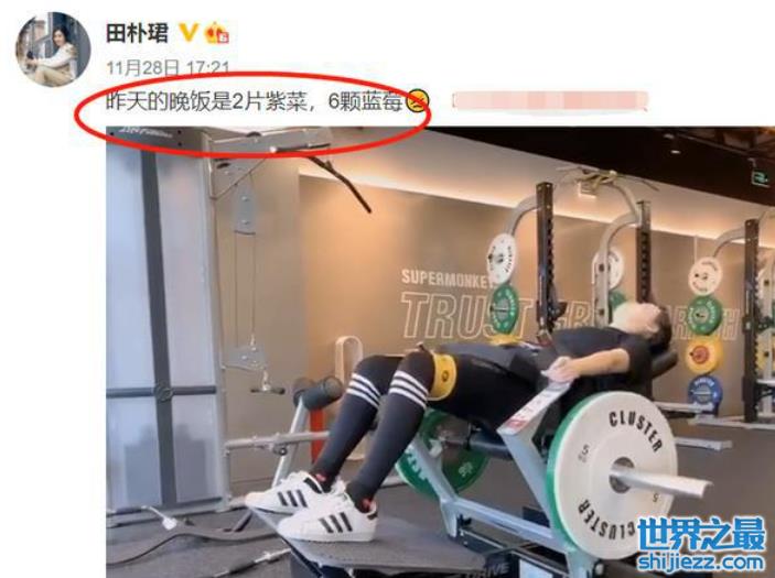 而且除了运动以外,在饮食上田朴珺也自我管理很严格,之前她曾自曝,自己的晚餐不过只有两片紫菜跟6颗蓝莓而已,这么夸张的饭量,让大家都觉得相当震惊,大家都知道女明星吃的少,但也没有想到少得这么夸张。