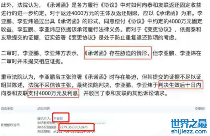除了亲昵举动陷入舆论外,李亚鹏前几个月被七千万的财务纠纷缠身,险成老赖。原因是知情人士爆料李亚鹏曾在两年前因欠款4000余万被法院列为被执行人,并且网友在某企业网站上查询时发现,李亚鹏名下的资产被冻结权益金额高达7000余万,冻结时间直至2024年才能终止。