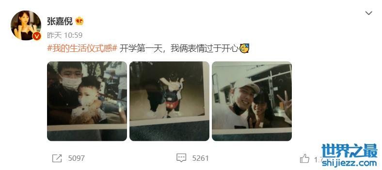 张嘉倪买超夫妻晒出了送儿子上学的照片,看着儿子走进教室,夫妻俩还自拍了一张,笑得十分灿烂,配文表示对于儿子开学表示十分开心,也是很真实了。