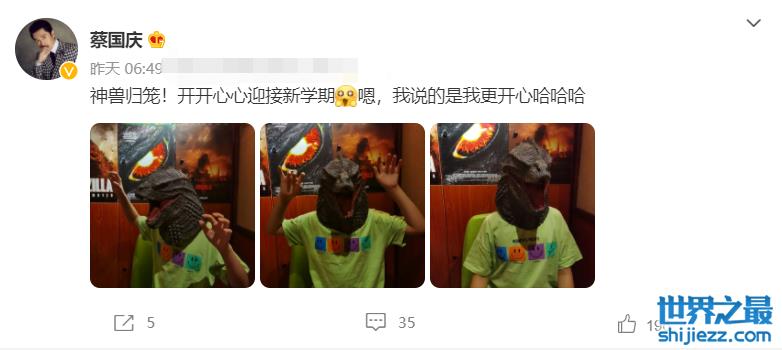 著名歌唱家也在社交平台晒出儿子戴着怪兽头套的照片,分享儿子开学的好消息,与张嘉倪买超夫妻相同的是,比起子女,送子女去上学的父母好像更开心。