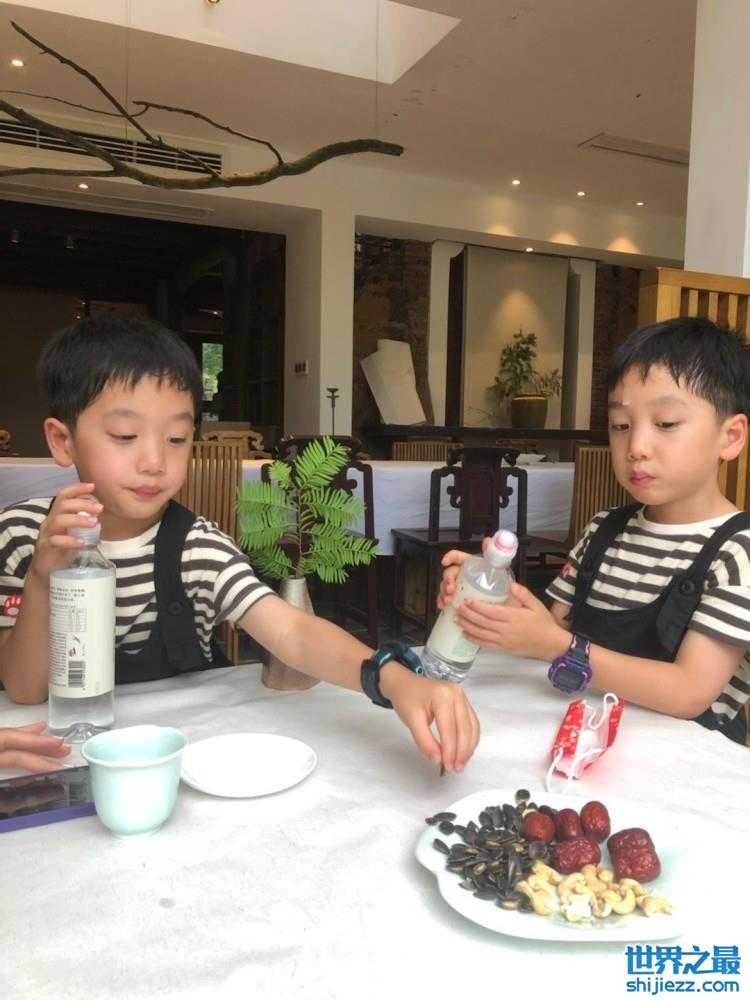 她晒出了自己的一对双胞胎孙子吃饭的照片,小孩子吃饭的样子很是认真,没有家长在一旁追着喂饭,看得出来被教的很好。